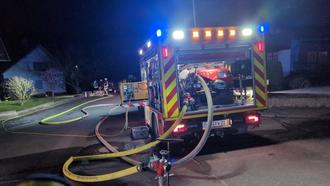 Beim Eintreffen der Feuerwehr an der Einsatzstelle wurde direkt mit dem Aufbau der Wasserversorgung und den Vorbereitungen für den Atemschutzeinsatz begonnen.
