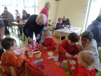 Zu den beliebtesten Veranstaltungen in der Kita gehören ohne Frage die Oma- und Opa-Tage – diesmal mit einem neuen Besucherrekord! Schon Wochen vorher wurden Ideen gesammelt und in den Gruppen einzelne Tänze und Lieder eingeübt. Gruppenweise fanden dann in der Woche vom 31.03. bis 03.04.25 die Oma- und Opa-Tage statt. Jede Gruppe hatte sich etwas Anderes zur Begrüßung einfallen lassen. Die Eichhörnchen tanzten zum „Party Hit“ und sangen das „Kindergartenlied“. Auch die Eulen hatten das „Kindergartenlied“ ausgewählt und zusätzlich den „Körperteilblues“ eingeübt. Frühlingshaft wurde es bei den Igeln mit „Kommt der Frühling in das Land…“. Beim „Oma- und Opa-Song“ der Hasen bot sich den geladenen Großeltern sogar die Möglichkeit zum Mitmachen, was für allgemeine Erheiterung sorgte. Das weitere Programm bot den Omas und Opas und ihren Enkeln die Möglichkeit einen Tontopf zu bemalen, Sonnenblumenkerne einzupflanzen und einen passenden Blumenstecker mit einem Sonnenblumengedicht zu gestalten. Zur Stärkung zwischendurch hatten die Eltern der Kinder im Vorfeld Kuchen gebacken. Im frühlingshaft dekorierten Turnraum trafen sich dann Kinder und Großeltern zum Basteln, Kaffee und Kuchen verzehren oder gemeinsamen Anschauen ihrer Portfolioordner. Auch das Außengelände wurde fleißig genutzt. Man konnte sogar den ein oder anderen Opa oder eine Oma die Rutsche heruntersausen oder Fußball spielen sehen. Die Nachmittage gingen viel zu schnell vorbei und alle freuen sich schon auf das nächste Treffen.