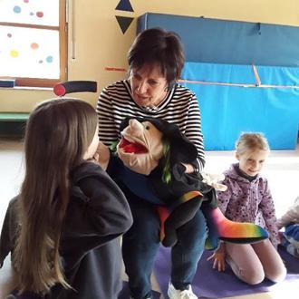 Dabei werden Kauflächen, Außenflächen und Innenflächen nacheinander gründlich geputzt. Die Handpuppe Irma soll den Kindern nicht nur die Angst vorm Zahnarzt nehmen, sondern auch den großen Stellenwert von Zahngesundheit vermitteln. „Na das klappt doch gut“, meinte Frau Dr. Hinrichs, die zuerst die KAI- Technik mit dem Zeigefinger übte, damit die Kinder erst einmal ein Gefühl für ihre Zähne bekamen. Danach wurde an alle Kinder Zahnbürsten verteilt. In Kleingruppen erhielten die Kinder von Fr. Dr. Hinrichs Zahnpasta und so konnten sich die Kleinen und Großen nun im Zähneputzen und der vorher geübten Technik ausprobieren. Begeistert sangen die Kids das Zahnputzzauberlied, das ihnen half, sich an alle wichtigen Schritte zu erinnern. Wir bedanken uns bei Fr. Dr. Hinrichs und ihr Team für den tollen Vormittag.