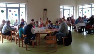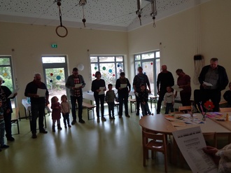 Für den gemeinsamen Anfang wurde unser Kindergartenlied gesungen. Um ein bisschen in Bewegung zu bleiben wurde noch der Körperteilblues getanzt. Anschließend durfte gemeinsam mit den Omas und Opas gebastelt werden. Da wurde fleißig ausgeschnitten und geklebt. Großeltern, wie auch die Kinder waren mächtig stolz auf ihr Meisterwerke. Nach dem Programm hatten die Großeltern die Möglichkeit, gemeinsam mit ihren Enkelkindern sich den Kindergarten anzuschauen und alles auszuprobieren. Die Großeltern hatten große Freude zu sehen, was die Kinder im Kindergarten spielen.