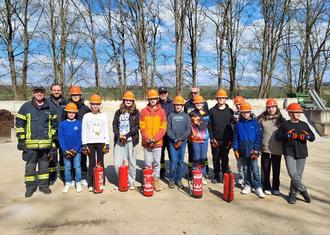 Anschließend zeigte Daniel Wagner, wie man einen Feuerlöscher in Betrieb nimmt. Und dann wurde es spannend: alle Kinder durften ran, um ein richtiges Feuer schnell und gründlich an der Ausbreitung zu hindern. Rasch wurde allen klar, dass in der Entstehungsphase die größte Chance besteht, einen Brand zu löschen. Alle waren sich am Ende einig, wie wichtig ein funktionierender Feuerlöscher ist und wo man ihn im Ereignisfall findet.