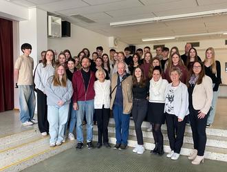 Gruppenfoto mit Lynette Polatin, Nachfahrin der Familie Buchheim, in der Freiherr-vom-Stein-Schule