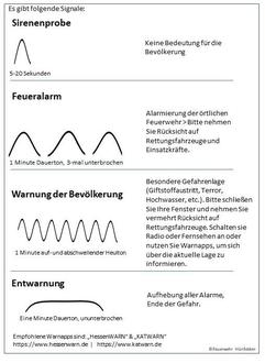 Alle sechs Monate werden alle Sirenen in Hünfelden mit dem Warnton „Warnung der Bevölkerung“ und „Entwarnung“ getestet. Dies dient rein der Vorsorge und ist Routine. Es soll ebenso zur Sensibilisierung auf die teils unbekannten Signale beitragen.