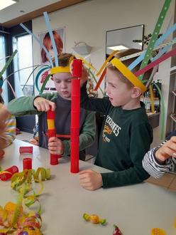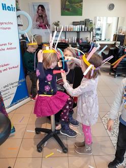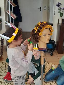 Claudia hatte die Vorschulkinder auch in diesem Jahr wieder eingeladen, einen Blick hinter die Kulissen und Frisierstühle zu werfen. Mit dem Linienbus fuhren wir nach Kirberg zu Claudia. Sie hatte spannende Experimente vorbereitet. Während sich die eine Gruppe interessiert mit Haaren, Perücken und Düften beschäftigte, baute die andere Gruppe Türme aus Lockenwicklern. Dabei stellte es sich heraus, dass der Turm umso höher wurde, wenn man die gelben Lockenwickler in die roten steckte. Schnell war die Zeit vorbei und die Schlaubären kehrten pünktlich zum Essen zu Fuß in den Kindergarten zurück. Die Vorschulkinder sagen ganz herzlich „Danke!“ für den spannenden, lehrreichen und kurzweiligen Vormittag bei Dir, Claudia.