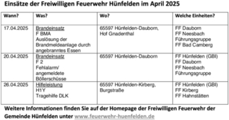 Weitere Informationen finden Sie auf der Homepage der Freiwilligen Feuerwehr der Gemeinde Hünfelden unter www.feuerwehr-huenfelden.de