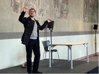 Neben einer Altstadtrallye (mit Zentrum Paulskirche), bot das Archiv der Stadt Frankfurt eine fachkundige Führung durch die Ausstellung „Auf die Barrikaden!“ an und ein ganz besonders Highlight stellte das Ein-Personen-Theaterstück von und mit Tino Leo, dar, das den Titel: „Einigkeit und Recht und Freiheit“ trägt.