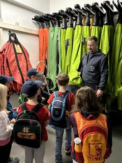 Los ging es mit einer Führung durch das Haus. Hier konnten die Löschzwerge herausfinden, wo die Feuerwehrmänner und -frauen während ihrer 24-Stunden Schicht essen, schlafen, TV schauen und trainieren. Besonders die Rutschstangen, an denen die Feuerwehrleute im Notfall schnell zu den Fahrzeugen kommen, fanden alle aufregend. Dann ging es in die Werkstatt, wo Schläuche und andere Geräte nach einem Einsatz gewartet und gereinigt werden. Ein Highlight war der Rundgang durch die Atemschutzübungsstrecke, bei dem die Kinder hautnah sahen, wie Feuerwehrleute unter Atemschutz üben. Die letzte Station war die große Fahrzeughalle, wo die Kids verschiedene Feuerwehrautos wie das HLF (Hilfeleistungslöschgruppenfahrzeug), ein Feuerwehr-Motorrad oder auch ein Rettungswagen bestaunten.