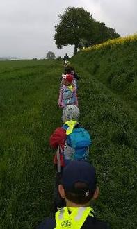 Am 15.05.2023 besuchten die Vorschulkinder des Spatzennests in Nauheim, den Landwirtschaftsbetrieb von der Familie Bernhard Höhler in Niederbrechen. Gemeinsam wanderten die Kinder mit drei Erzieherinnen zum Lindenhof. Wir gingen am Nauheimer Grillplatz vorbei, über den Nauheimer Kopf, sodass wir sogar von oben schon den Bauernhof sehen konnten.
