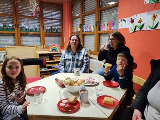 Während dem Warten gab es einen kleinen Snack. Streusselkuchen und/oder Brötchen mit Fleischwurst.