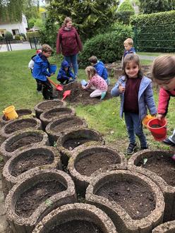 Jetzt sind sie wieder richtig schön geworden! Bunte Blumen, Tomaten, Erdbeeren und Vieles mehr wurde von den Großeltern und den Kindern eingepflanzt. Jetzt brauchen die Pflanzen nur noch gute Pflege durch die Kinder, dann kann geerntet werden!