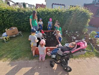Am Mittwoch, den 06.06.23 war es endlich soweit. Ein großer Lastwagen fuhr in die Einfahrt der Kita und nach und nach wurde viel Material abgeladen. Das Betreuerteam der Stiftung baute zügig das Kinderhochbeet am Eingangsbereich auf und befüllte es mit Pflanzerde.