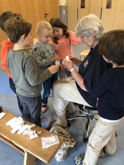 Die Vorschulkinder waren sehr gespannt zu erfahren, wie man verletzten Menschen helfen kann.