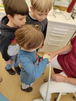 In diesem Zusammenhang liegt es uns auch sehr am Herzen den Kontakt zu unserer Patenzahnärztin Fr. Dr. Hinrichs zu pflegen. So gab es auch einen Besuch der Vorschulkinder in ihrer Praxis und einen Besuch ihrerseits in unserer Kita.