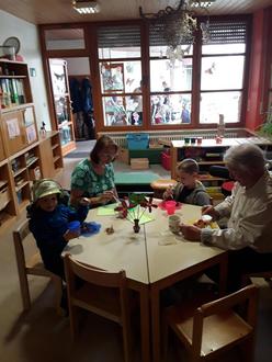 Später durften die Kinder mit ihren Omas und Opas in der Kita und draußen spielen. Die Kinder lachten und hatten viel Spaß, und auch die Großeltern hatten ein strahlendes Lächeln im Gesicht.
