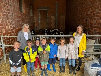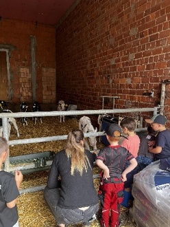 Wir sind hingefahren und haben danach gewartet auf alle, weil wir die ersten waren und dann waren alle da. Dann haben wir gefrühstückt. Dann sind wir zuerst zu den Kälbern die zwei Tage alt waren. Dann sind wir zu den Katzen. Danach sind wir zu den Baby Kühen. Dann sind wir zu den Traktoren und Teleskop Lader gegangen. Danach sind wir zu den Kühen in den Stall die schon größer waren. Danach sind wir in das Krankenhaus und in das Melkkarussell und danach haben wir das Essen geguckt und waren bei den Schwangeren Kühen. Dann sind wir zu der Waage mit der Katze, da haben wir zusammen ganz viel gewogen und dann sind wir wieder zurück und da durften wir noch mit den kleinen Traktors fahren und haben Bilder vor dem großen Traktor und den Kühen gemacht.