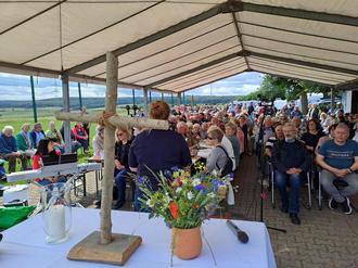 Viele Gemeindeglieder aus allen Orten der neuen Gesamtkirchengemeinde Goldener Grund – Taunus nahmen am Gottesdienst auf dem Römberg teil