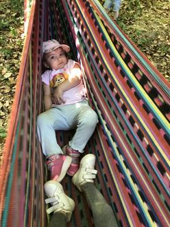 Zur Entspannung konnten die Kinder in unserer mitgebrachten Hängematte schaukeln und dabei die Baumkronen beobachten.
