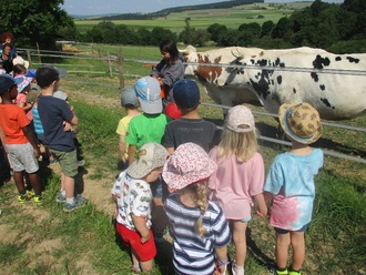 Nach einer Einladung einer Kindergartenfamilie besuchten die Kinder der Kita Heringen den Hof Wiesenblick. Nach einer gemeinsamen Wanderung wurden wir herzlich begrüßt.