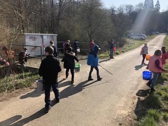 Bereits auf dem Weg Richtung Hainbach wurde schon viel Müll am Wegesrand gefunden, der dort achtlos hinterlassen wurde. Nach einer Doppelstunde hatten die meisten Kinder die Eimer randvoll mit Müll. Sogar Pfandflaschen wurden im Hainbach gefunden.