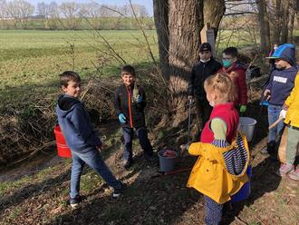 Als Marlies Brunn, Lehrerin der Klasse 1b an der Freiherr-vom-Stein Schule davon erfahren hat, hatte sie die Idee einfach mit ihrer Klasse einen entsprechenden Aktionstag durchzuführen. Am 24. März war es dann soweit! Die Schüler*innen haben im Rahmen des Su-Themas "Müll" diese Aktion am Hainbach durchgeführt.