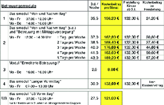| Betreuungsmodule | Std. / Woche | Kostenbeitrag pro Monat | |