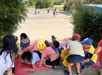 Dort angekommen, erkundeten wir den Schulhof, probierten die Rutschen, dass Klettergerüst und die Schaukel aus.