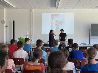 Vor zwei Jahren - noch zu Corona-Zeiten - fand sich Dirk Reinhardt sogar bereit, zwei 7. Klassen per Video-Live-Schaltung für ihre Fragen zur Verfügung zu stehen. Dieses Mal war es noch authentischer: der Roman „Train Kids“ war gerade in den Klassen 7Ga, 7Gb, 7Gc im Unterricht behandelt worden - und Dirk Reinhardt konnte feststellen, wie gut das Buch in den Klassen angekommen war. Den 7. Klassen wiederum lagen viele Fragen zum Buch auf dem Herzen. Und sie konnten bei den Antworten spüren: da spricht einer, der weiß, wovon er schreibt.