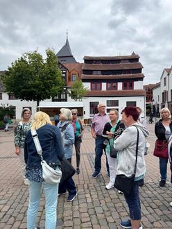 Umgeben von prächtigen Fachwerkhäusern, darunter das imposante Rathaus und das berühmte Schiefe Haus, erhielten wir einen ersten Eindruck von Idsteins reichem architektonischen Erbe.