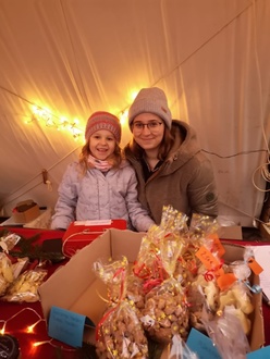 Am Samstag, den 09.12.2023 stand der langersehnte Weihnachtsmarkt in Nauheim an. Natürlich hatte der Kindergarten einen großen Stand. Hier verkauften die Erzieher*innen zusammen mit den Vorschulkindern tolle Sachen, die von den Eltern und vielen anderen Personen aus Nauheim extra für unseren Stand beim Adventsfunkeln gespendet wurden. Es gab selbstgemachte Handwärmer, handgemachte Seife, viele verschiedene Gewürze, Trinkschokolade, Plätzchen, Stirnbänder, Bruchschokolade, tolle gehäkelte Sachen, Konfitüre, gebrannte Mandeln und vieles mehr zu verkaufen. Fleißig standen die Vorschulkinder aus dem Nauheimer Kindergarten mit ihren Erzieher*innen in dem Verkaufshäuschen und gaben sich große Mühe beim Verkaufen. Innerhalb kürzester Zeit, kamen viele Besucher an den Stand und kauften unsere schönen Sachen und somit konnte ein stolzer Preis erzielt werden.