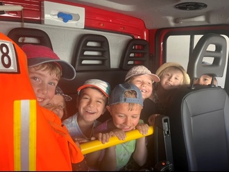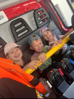 Zum Abschluss durften alle einmal im Feuerwehrauto mitfahren. Das fanden alle Vorschulkinder super!