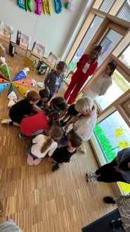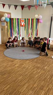 Die Kinder präsentierten stolz ein kleines Programm, das sie in den letzten Wochen einstudiert hatten. Ein besonderer Moment war, als die Kinder ihre Abschlussgeschenke in Form von selbstgebastelten Schultüten, Portfolioordner, Schlaufuchshefte und Vorschulshirts erhielten.