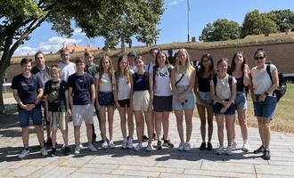 Den Abschluss des Europaschulprojektes „Erinnerungskultur“ des Bilingualen-Kurses der Jahrgangsstufe 10 bildete in der letzen Schulwoche die Studienfahrt nach Theresienstadt, Lidice und Prag. Im Vorfeld hatten sich die 16 Schülerinnen und Schüler in ihrem Bilingualen Unterricht mit dem geschichtlichen Thema „German History - Antisemitism in history with focus on National Socislism“ beschäftigt. Während des Schuljahres lernte die Gruppe die Schicksale der Hünfeldener Jüdinnen und Juden kennen und erstellte in der Projektwoche Filme über einzelne jüdische Einwohner. Da einige Hünfeldener Jüdinnen und Juden in das Ghetto Theresienstadt deportiert wurden und um selbst einen Eindruck über die Grausamkeiten der Nationalsozialsozialisten in der vergangenen Zeit zu erhalten, trat der Kurs die Reise mit ihren beiden Lehrerinnen Patricia Birkenfeld und Babett Kurzius-Beuster nach Tschechien an. Das erste Ziel der Studienfahrt war das Konzentrationslager Theresienstadt, welches für die Schülerinnen und Schüler einen besonders bedrückenden und emotional bewegenden Ort darstellte. Das „Theresienstädter Konzentrationslager“ erfüllte vier Aufgaben: Es war Gestapo-Gefängnis, Transitlager auf dem Weg in die großen Vernichtungslager; es diente im Rahmen der Judenpolitik der Vernichtung von Menschen und - zeitweilig - der NS-Propaganda als angebliches „Altersghetto“. Bis zum Ende des Zweiten Weltkrieges und der Befreiung des Lagers durch die Rote Armee waren dort über 140.000 Häftlinge unter menschenunwürdigen Bedingungen interniert. Transporte führten von Theresienstadt ab Oktober 1942 nur noch ins Vernichtungslager Auschwitz-Birkenau. Nach der Besichtigung des Konzentrationslagers wurde die Gedenkstätte im tschechischen Lidice besucht, in der an die Vernichtung des gesamten Dorfes am 10. Juni 1942 durch die Deutschen Nazis erinnert wird. Als Strafaktion nach dem Attentat auf Reinhard Heydrich wurde das unschuldige Dorf als Racheakt vollständig zerstört. Auch hier bekamen die Schülerinnen und Schüler eine fast zweistündige Führung über das Gelände. Hierbei konnte man unter anderem die Fundamente der alten Kirche sowie der Schule sehen. Darüber hinaus führt der Weg vorbei am Massengrab für die getöteten Männer und an einem Denkmal für die Kinderkriegsopfer. Im Museum informierte eine tief bewegende Ausstellung über die Geschichte und das Schicksal des Dorfes und seiner Bewohner. Zusätzlich wurde ein Einblick in das Leben der Bewohner vor dem Krieg gegeben. Anhand von Familien-Fotos wurde das ganze Ausmaß dieser schrecklichen Tragödie deutlich gemacht. Am Mittwoch besuchten die Schülerinnen und Schüler die tschechische Hauptstadt Prag. Startpunkt war der Wenzelplatz, von wo aus es in das alte jüdische Ghetto und anschließend in die Altstadt, vorbei an der Karlsuniversität und über die Karlsbrücke. Mit der Straßenbahn fuhren sie weiter zum zweitgrößten Burgareal der Welt, der Prager Burg mit sieben Hektar Grundfläche. Dort endete die Führung mit einer atemberaubenden Aussicht über Prag. Insgesamt war es für die Schülerinnen und Schüler einer sehr gelungene Studienfahrt mit sehr vielen Eindrücken und intensiven, erschreckenden Fakten und Orten, welche sicher nachhaltig in Erinnerung bleiben werden.
