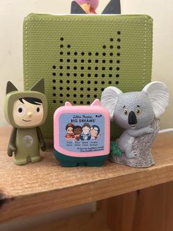Die Eltern überreichten mit den Kindern ein selbst gestaltetes Holzschild, das direkt am Eingang einen neuen Platz fand. Zusätzlich wurde noch eine neue Tonie-Box mit einem selbstbesprochenen und gesungenen Tonie, sowie dem „Trau dich Koala Bär“ -Tonie und dem „Little people, Big Dreams -Tonie Lebensgeschichten großer Menschen, überreicht. Unser herzliches Dankeschön!! Wir freuen uns wirklich sehr