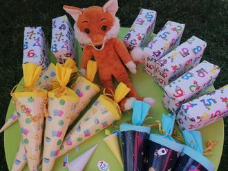Danach bekam jedes Kind seinen Portfolio-Ordner, seine Vorschulmappe in der selbst gestalteten Tasche, eine Foto-Brotdose und eine kleine Schultüte überreicht.