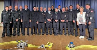 Bei den anschließenden Ehrungen konnte Jan Barwig zum Oberbrandmeister befördert werden. In die Ehren- und Altersabteilung wurde Rainer Klimmek nach 48-jähriger aktiven Dienstzeit verabschiedet. Das silberne Brandschutzehrenzeichen wurde an Andreas Mitsch, das goldenen Brandschutzehrenzeichen an Jürgen Lang und Axel Schäfer verliehen. Die Katastrophenschutzmedaille in Bronze wurde an Alexander Sand überreicht.