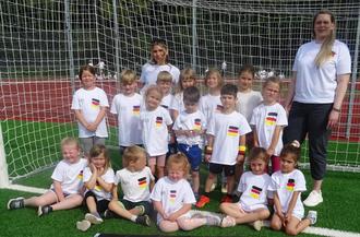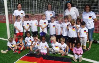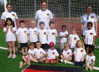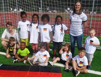 Es wurde gekickt, was das Zeug hielt, und die Kinder hatten einen riesen Spaß dabei: Die Kindergarten-Fußballmeisterschaft am 18.07.2024 war ein voller Erfolg. Begonnen hat die Veranstaltung mit dem Einmarsch der Kinder. Kurz darauf führten die Kleinsten der Kita einen Tanz auf das Lied „Waka Waka“ vor und eine Kleingruppe zeigte durch einzelne Trainingsstationen einen Einblick in unser wochenlanges Training. Die Fans (Kindergartenkinder) sorgten mit einem Tanz auf das Lied „So sehen Sieger aus“ für ordentlich Stimmung. Daraufhin spielten die FußballspielerInnen der einzelnen Gruppen (Kindergartenkinder) mit ihren in der Kita gestalteten Trikots gegeneinander und wurden dabei von den extra für diesen Anlass unter Vertrag genommenen Schiedsrichtern Jonas Ronshausen und Jannes Kees begleitet. Auch die Zuschauer (Eltern und Großeltern) jubelten und feuerten die SpielerInnen und Fans fleißig an. Zum Abschluss gab es eine Siegerehrung, bei der jedes Kind eine Medaille erhielt.