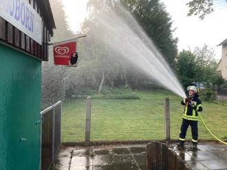 Besonderen Dank gilt dem Team des Dauborner Schwimmbades für die Bereitstellung der Örtlichkeiten und die nachfolgende Versorgung mit kühlen Getränken und Snacks. Selbstverständlich konnten sich die Einsatzkräfte nach getaner Arbeit im Schwimmbecken noch mal ordentlich erfrischen.