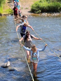 Am nächsten Zeltlagertag führte der Tagesausflug zum Barfußpfad nach Bad Sobernheim. Barfuß über Matsch, Steine, Holz und Gras – eine schöne Abwechslung zum Lagerleben.