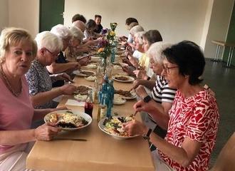 Willkommen sind alle, die sich spätestes bis montags anmelden. Das gemeinsame Essen findet immer am 3. Donnerstag im Monat statt. Wir wünschen uns und allen Teilnehmern noch weiterhin viel Appetit auf das gemütliche Beisammensein in froher Runde.