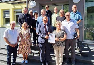Die Kosten für den Neubau des Feuerwehrgerätehauses in Heringen belaufen sich auf 3,5 Millionen Euro. Deshalb war die Freude groß, dass der Besuch des Hessischen Innenministers, Prof. Dr. Roman Poseck (CDU), trotz eines streng getakteten Terminkalenders, statt gefunden hat. Zum ersten Mal in seiner Amtszeit als Hessischer Innenminister machte Poseck, der in Limburg wohnt, Halt in Hünfelden und konnte der Bürgermeisterin einen Zuwendungsbescheid in Höhe von 263.725.- Euro überreichen. Viele freudige Gesichter und großer Applaus durch die Anwesenden im Sitzungssaal der Gemeinde. „Die Feuerwehren stehen immer wieder vor neuen Herausforderungen. Nicht nur im Brandfall, sondern auch gerade im Katastrophenschutz (Hochwasser, Sturm) oder bei Verkehrsunfällen sind sie nah dran am Menschen. Sie müssen bestmöglich ausgestattet sein und optimale Bedingungen vor, während und nach einem Einsatz vorfinden“, so Poseck in seiner Rede. „Den größten Anteil an den Kosten trägt die Kommune, aber wir können trotz angespannter Finanzlage im Land hier einen wichtigen Beitrag leisten.
