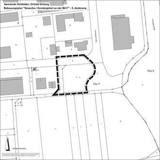 (1) Die Gemeindevertretung der Gemeinde Hünfelden hat am 03.07.2024 gemäß § 2 Abs. 1 i.V.m. § 13a BauGB die Aufstellung des Bebauungsplanes „Gewerbe-/ Sondergebiet an der B 417“ - 5. Änderung im Ortsteil Kirberg (Bebauungsplan der Innenentwicklung gemäß § 13a BauGB) beschlossen.