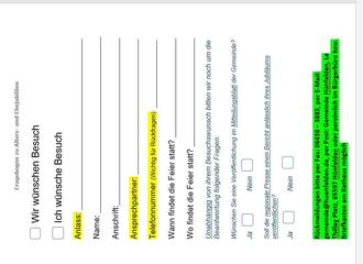 Meldung von Ehe- und Geburtstagsjubiläen