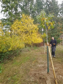 Nachdem in 2018 der Anfang der Maronenallee im Hünfeldener Wald mit der Pflanzung von sechs Bäumen getan wurde, wurde die Baumreihe im November letzten Jahres durch zwei weitere Maronenbäume vervollständigt.