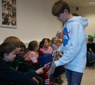 Parallel dazu lasen in weiteren ersten Klassen Constantin Ickstadt, David Müller und Noah Helfenstein (5R und 5G) eine Geschichte über Planeten, die deutlich macht, wie einzigartig unsere Erde ist. Die Lesemotivation wird natürlich auch gesteigert durch eine auf die jeweiligen Altersstufen und Lesevorlieben abgestimmte Auswahl an Kinder- und Jugendbüchern. Hier ist Schülerbücherei der Freiherr-vom-Stein-Schule beispielhaft, denn für alle Klassen ist das passende Lesefutter vorhanden- zahlreiche Neuerscheinungen und beliebte Buchreihen erfreuen sich großen Interesses. Dass die Bücherei mit einem vielfältigen und aktuellen Angebot für die Schülerinnen und Schüler eine attraktiver Ort zum Lesen und Wohlfühlen ist, liegt auch an der Unterstützung durch den Förderverein der Europaschule, der dafür sorgt, dass regelmäßig die neusten Bücher gekauft werden können. Auch das Programm Löwenstark des Landes Hessen ist verantwortlich dafür, dass die durch Corona entstandenen Lücken schnell aufgeholt werden können und die Lesefähigkeit und -motivation gefördert wird. Daher kann sich die gesamte Schulgemeinde über umfangreiche Buchpakete mit neuen Romanen, Sachbüchern und beliebten Kinderbüchern freuen, die ab sofort allen Schülerinnen und Schülern der Schule zur Verfügung stehen.