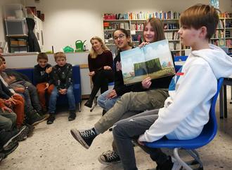 Dieses Mal kamen die Erstklässler in den Genuss einer lustigen Geschichte über Hase Hibiskus und seine Freunde. Der Hase und seine Freunde wollen einen ein Ausflug ans Meer machen, doch weil der Hase so aufgeregt ist, fährt er zunächst ohne sie los. Doch richtige Freunde halten zusammen und lösen alle Probleme gemeinsam. Lebendig vorgelesen wurde die unterhaltsame Geschichte von Angel Singh, Mila Czech und Nils Blumenstrath (6Gb).