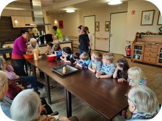 Die Kinder freuten sich riesig und machten sich mit dem vorbereiteten Teig auf den Weg ins Seniorenheim.