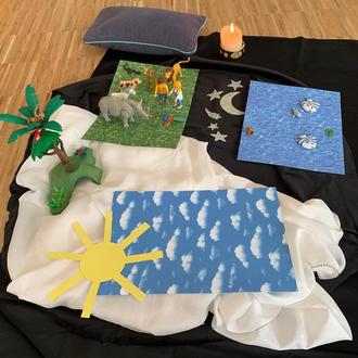 Ein Bodenbild zur Schöpfungsgeschichte hatten die Kinder beim Kindergottesdienst im September gestaltet.