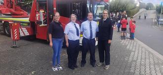 v.l.n.r.: Anna Heep (Fachbereich Kinderfeuerwehren), Tina Schneeberger (Abzeichen in Gold), Stefan Preußer (Abzeichen in Silber) und Lisa Viehmann (Kinderfeuerwehrwartin)
