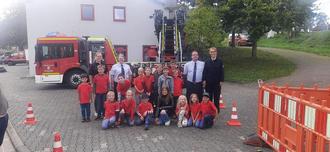 Der stolze Feuerwehrnachwuchs mit Betreuer der Freiwilligen Feuerwehr Neesbach