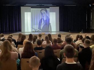 Der Dank der Schulleiterin Judith Lehnert richtete sich an Lioba Hilb für die eindrucksvolle und berührende Darstellung, aber auch an diejenigen, die durch ihren Einsatz ermöglichten, das Theaterstück in den Schulalltag zu integrieren: Oliver Hartmann (Schulsozialarbeit der Gemeinde Hünfelden) sowie Stephan Fritz, der sich als Organisator seitens der Lehrkräfte der Dauborner Schule engagierte. Die finanzielle Unterstützung erfolgte über VIDETO - Vielfalt, Demokratie und Toleranz im Goldenen Grund in Zusammenarbeit mit dem Förderverein „Freunde und Förderer der Freiherr-vom-Stein-Schule e.V“.
